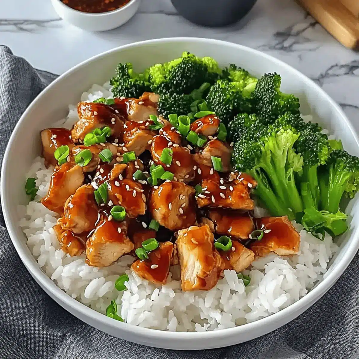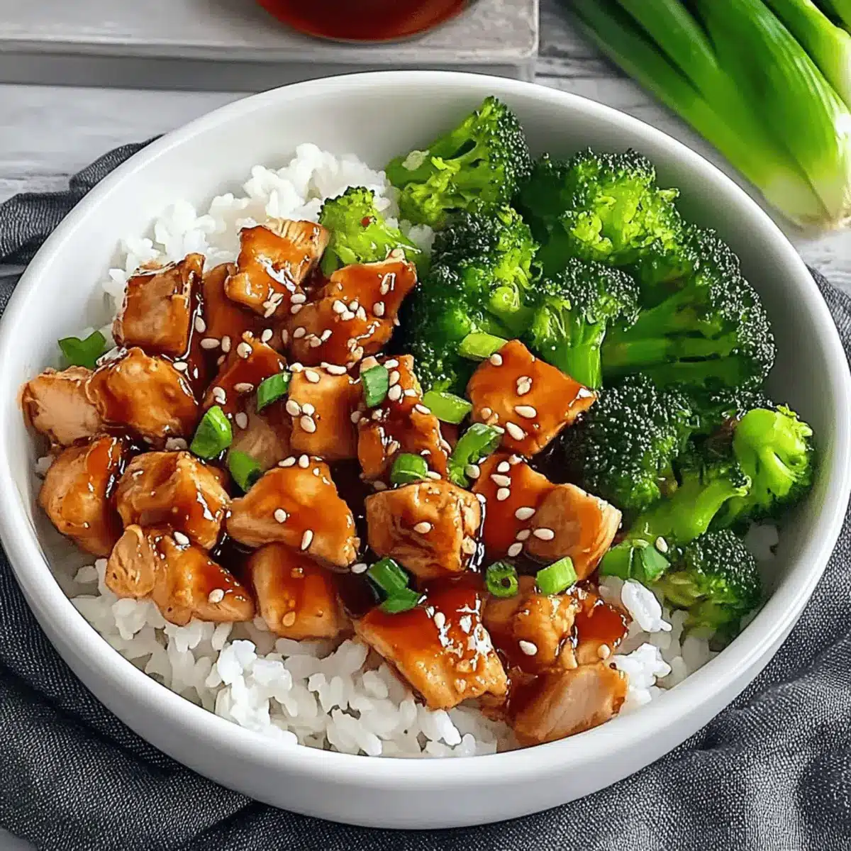 To serve your delicious Teriyaki Chicken Rice Bowl, scoop fluffy rice or quinoa into bowls. Top with the glazed chicken and add steamed vegetables for color and nutrition. Don’t forget to sprinkle sesame seeds and chopped green onions over the top for a fresh finish. This final touch enhances both flavor and presentation!