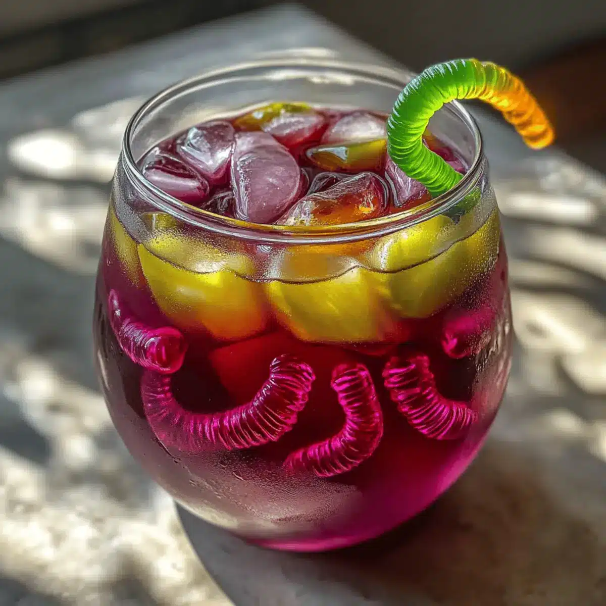 Creative Garnishes: Feel free to swap out gummy worms for creepy gummy spiders or eyeball candies to elevate the spooky aesthetic.