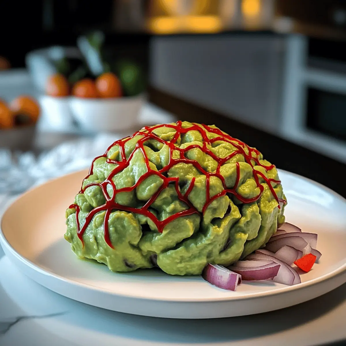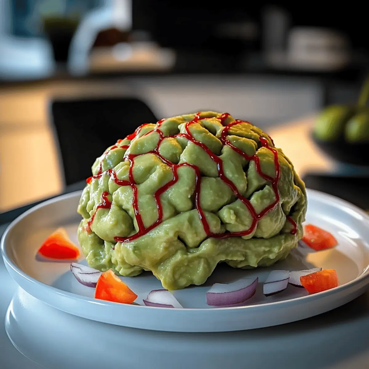 • Maintain Chunkiness: Be careful not to over-mix the guacamole; a slightly chunky texture mimics a brain and adds to the fun presentation.