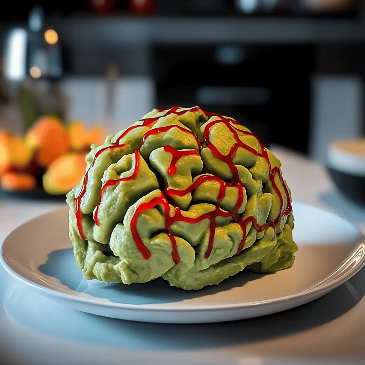 If desired, chill your Zombie Brain Guacamole in the refrigerator for about 15 minutes before serving. Pair it with spooky-shaped tortilla chips or vegetable sticks elegantly placed around the platter. Set the scene with Halloween-themed décor to elevate your presentation and delight your guests!